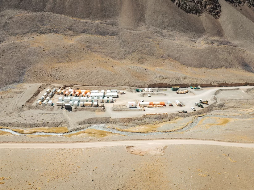 Calingasta. Imagen aérea de campamento del proyecto Vanesa-Susana.