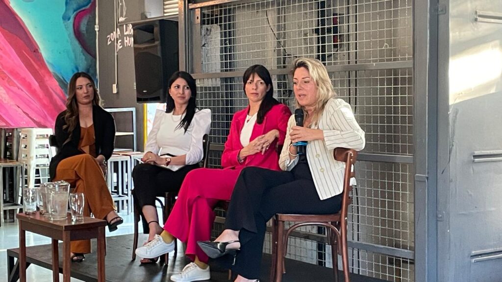 Cintia Marquetti (primera de derecha a izquierda) participando del panel “Mujeres Líderes de la industria Minera” en el marco del ciclo Historia Compartida que organiza la Cámara Minera de San Juan.
