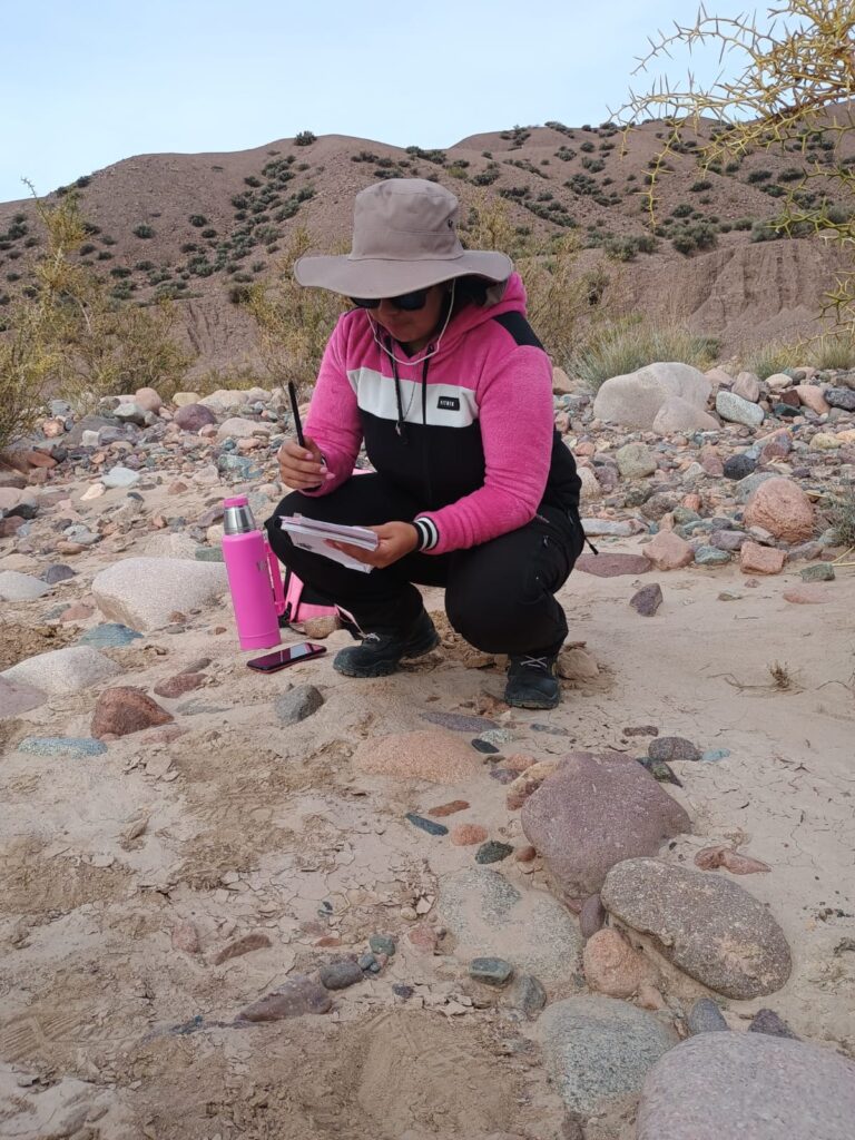 Es un gusto para mí estar en el programa. Les cuento que me recibí en la escuela secundaria como técnica minera, entonces, en los últimos años tuvimos materias prácticamente todas relacionadas a la minería y ahí me empezó a gustar, me gustaba sobre todo el trabajo de campo. Luego trajeron estas carreras a Calingasta y cuando fui a ver la oferta vi exploración geológica y la elegí a ojos cerrados.