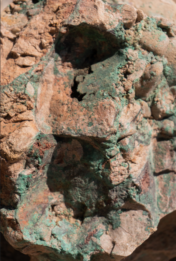 El cobre puede verse a simple vista en la roca que integra Martín Bronce.