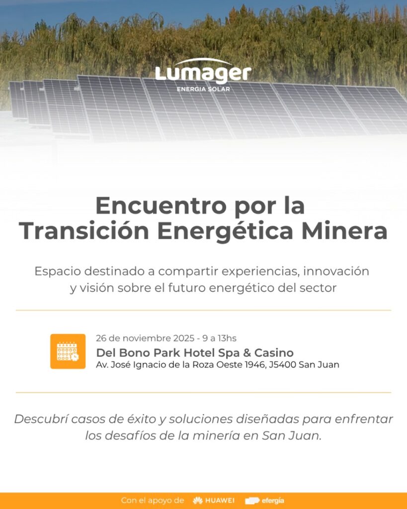 Exactamente, un evento organizado por Lumager, en el que también tendremos la gente de Huawei que vendrá a San Juan para hablar básicamente de lo que es el almacenamiento de energía. La gente asocia más el tema de baterías con la del auto o con la del celular, en estos casos hablamos de grandes baterías que almacenan la energía que generan los grandes parques solares. En San Juan tenemos proyectos de energía aislados, que no están conectados a la red, para estos casos se requieren baterías que almacenen la energía que se produce durante el día, para ser usada durante la noche. Entonces, esto que empezó a usarse desde el punto de vista de redes aisladas, ahora ya se usa en las redes interconectadas.