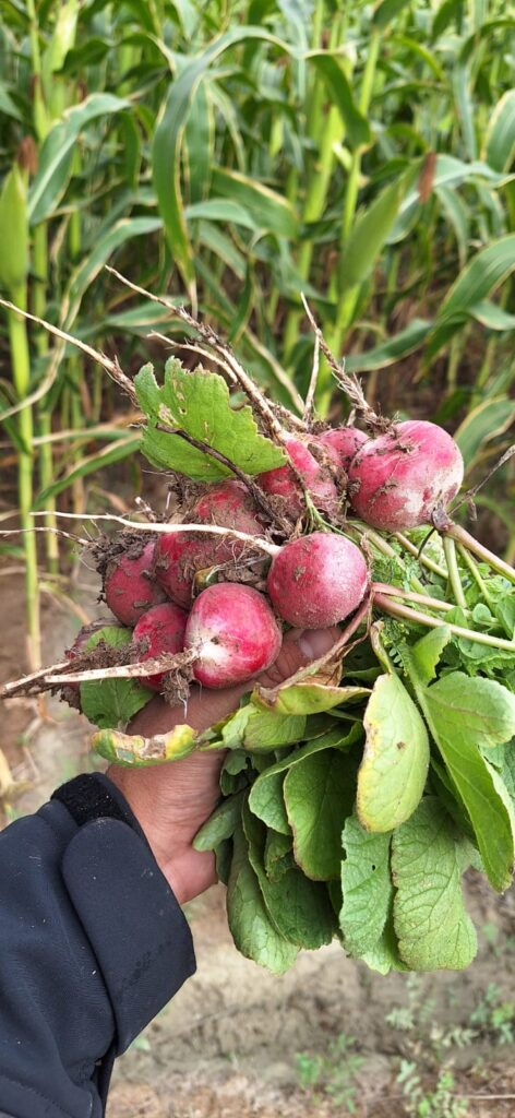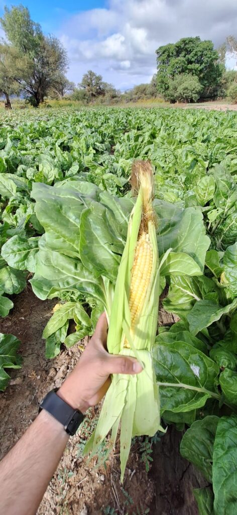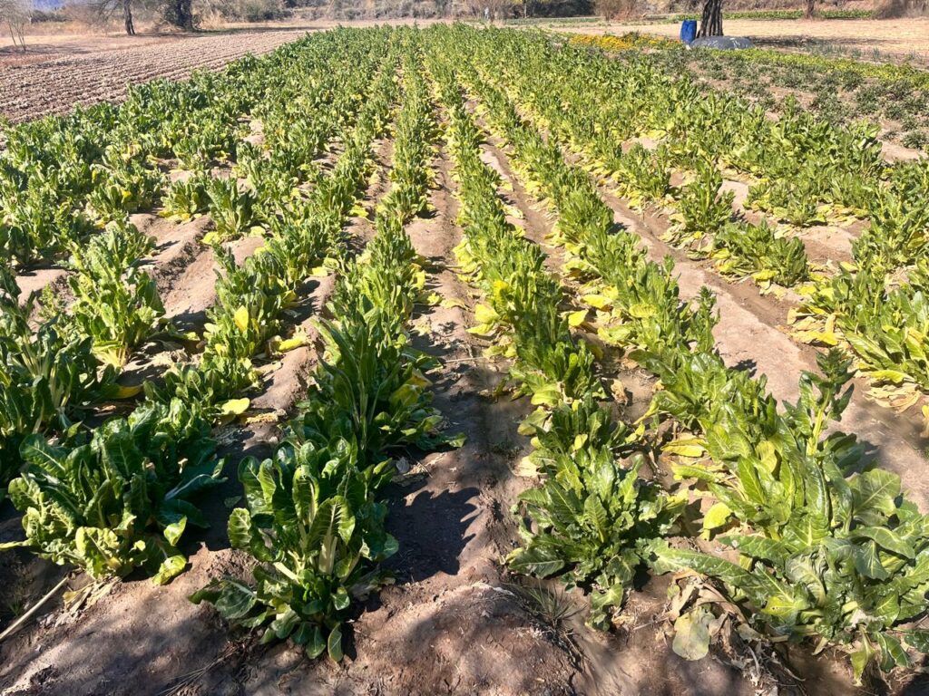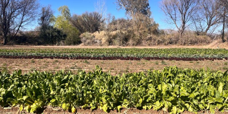 Lo que nosotros comercializamos no es solamente para Caterwest, sino que también tratamos de que justamente el productor pueda desarrollarse y el mismo consumidor entienda la importancia del compre local. Esto tiene muchísimo que ver con la calidad de lo que se consume. Nosotros, por ejemplo, estamos cosechando acelga a las 7 de la mañana y se la proveemos a varios productores locales de pasta fresca. Entonces si cosechamos acelga sobre las 7 de la mañana, al mediodía estamos llevando este producto a los fabricantes de pastas y a la noche tienes listo un rico raviol de acelga y ricota, por ejemplo. Y no pasa más de un día en ese proceso. Mantener esa frescura y calidad de productor es algo fundamental para nosotros. La acelga es solo un ejemplo, pero sacamos un montón de productos más como: puerro, apio, cebolla, ajo, albahaca, perejil, zanahoria. Con las zanahorias hicimos ya las pruebas que conté previamente, de 100 variedades, para establecer las fechas de siembra, pero ya están establecidas, o sea que el año que viene vamos a tener más zanahoria acá en Jáchal.