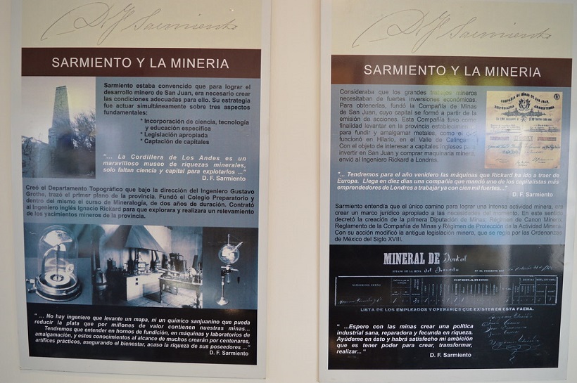 Junto a las fotografías exhibidas, el museo sarmientino muestra a los visitantes una serie de paneles alusivos a “Sarmiento y la Minería”.